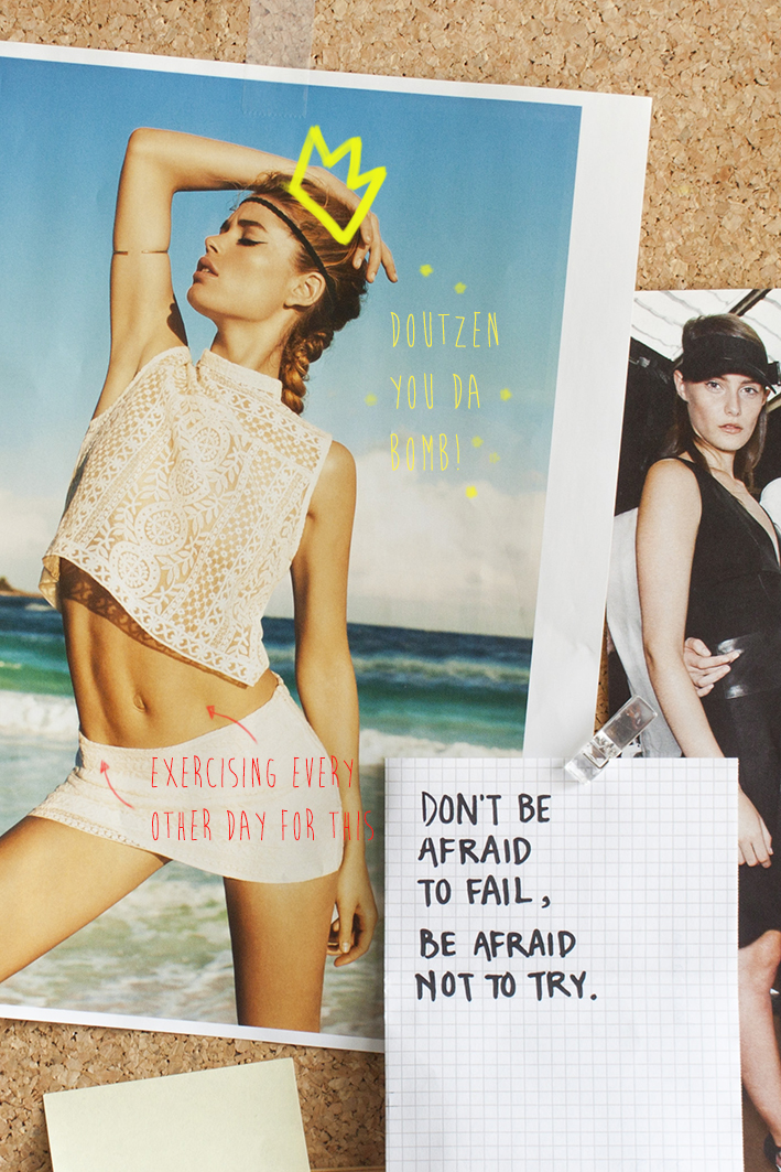 I'm trying to be more creative here. I noticed that I don't really use my pinboard, which has been hanging over my desk in my room. So I decided to use it as inspirational board and pin pictures on it, that have been inspiring me throughout a month. Not only fashion related things, but also motivational pictures and quotes or my latest youtube or music finds. After I've collected a good amount of pictures, I'll post a picture of my pinboard here and share it with you. I have never seen something like this before and I thought it would be quite fun.